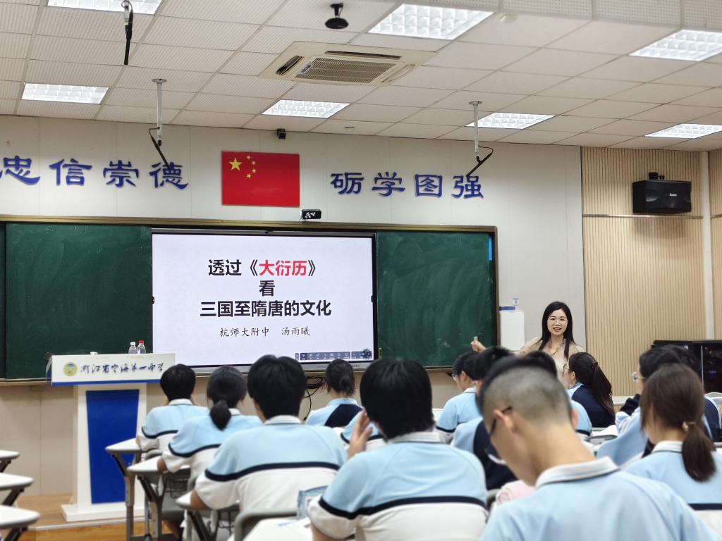 杭师大附中汤雨曦老师执教的《三国至隋唐的文化》,以唐代僧人一行编制的《大衍历》为核心线索,凭借春风化雨般的亲和力,通过何以修历、此历何以能成、此历何以外传三个问题链,带领学生开展了一场兼具深度与互动性的历史探究之旅。课堂尾声将所有问题落脚于“这折射出怎样的时代特征”的教学设计,帮助学生从具体科技成就上升到对整个隋唐时代精神的理解,实现了从“知其然”到“知其所以然”的深度跨越。