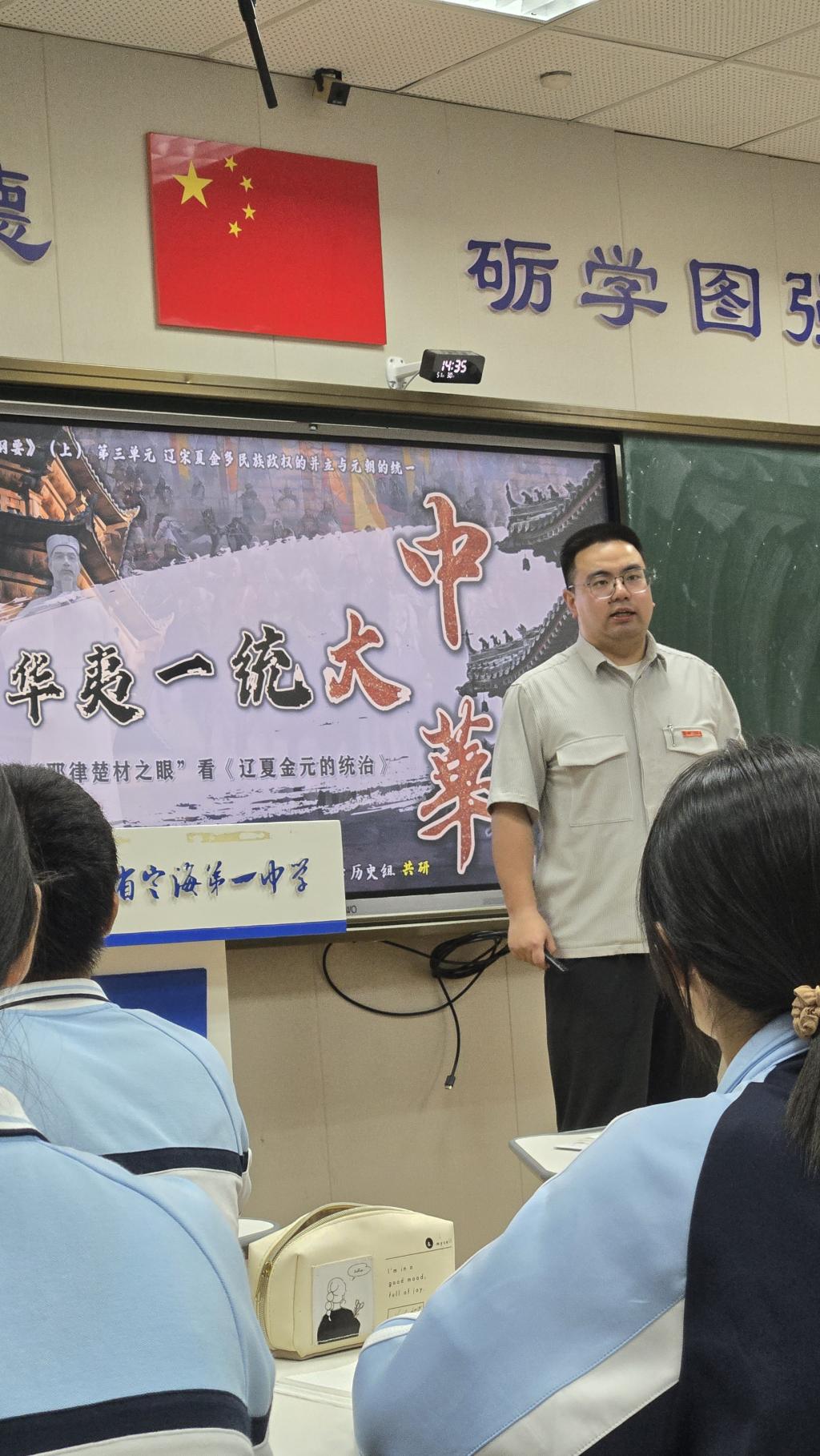 我校优秀校友段泽徐(现执教于定海一中)带来了精彩的第一堂课《辽夏金元的统治》,以“人物视角”破题,创新采用“耶律楚材之眼”串联历史脉络,带领学生探究从“小中华”到“大中华”的进阶之路,彰显了历史教学“以史育人”的独特魅力。课堂以耶律楚材的诗词为隐性线索,通过细腻的故事讲述、恰切的音乐渲染与沉浸式的情境建构,引导学生在扎实史料以及丰富的历史情境中理解“华夷之辩”到“华夷一统”的思想转变。课堂尾声,段老师以“历史接力棒”的比喻寄语学生,让学生在“中华民族共同体意识”中自然流淌家国情怀,实现了知识传授与价值引领的深度融合,更是历史教育“立德树人”的深刻诠释。
